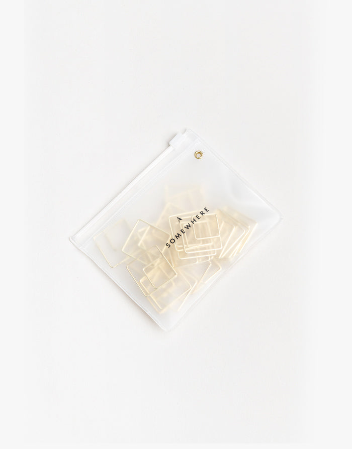 סט של 30 אטבי נייר בעיצוב גיאומטרי ייחודי, המשלב פונקציונליות עם סטייל. שומרים על המסמכים, השרטוטים וההשראות שלך מאורגנים – בבית, במשרד או בדרכים.