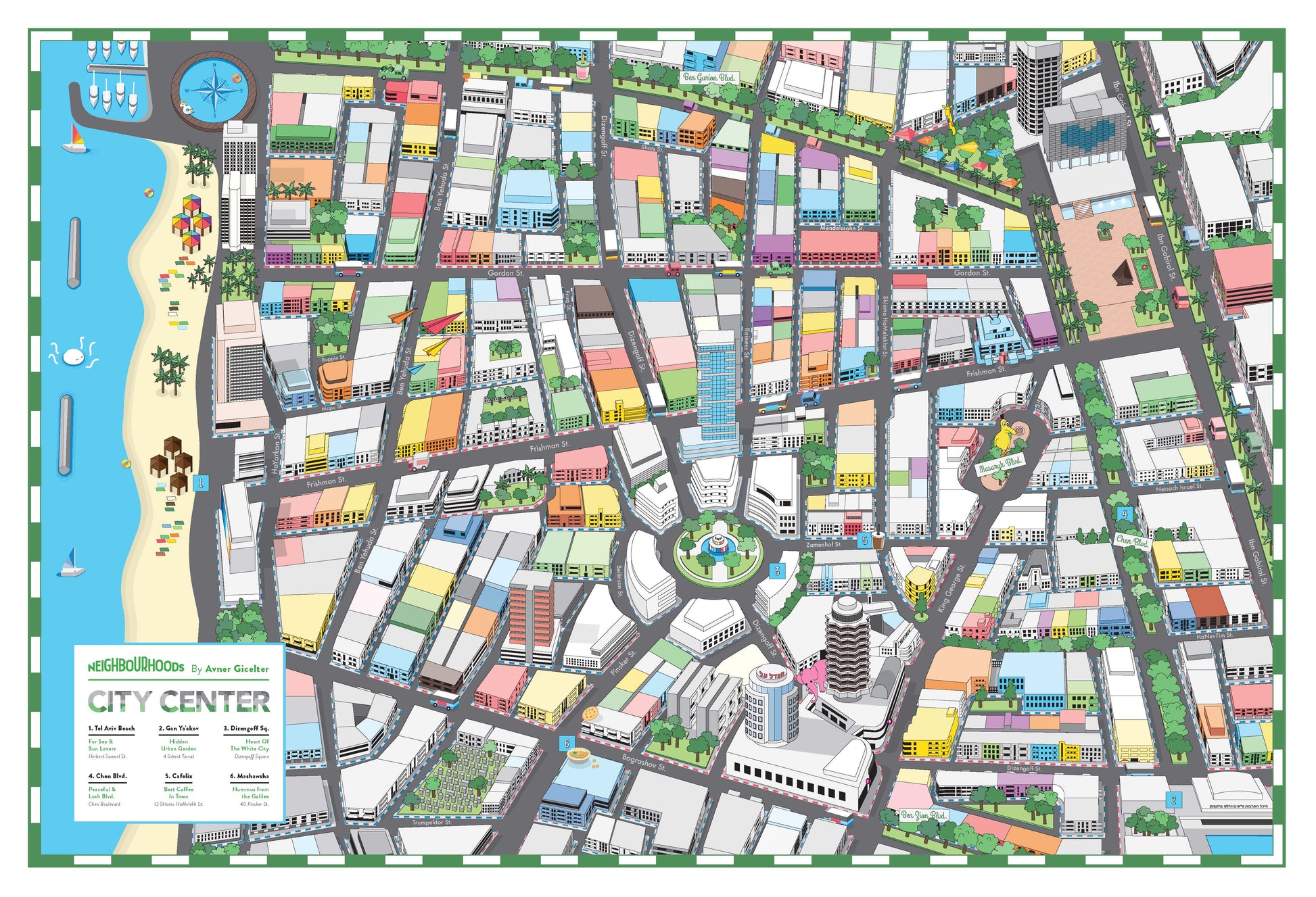 מפה מאויירת | שכונת לב תל אביב | סדרת נייברהודס