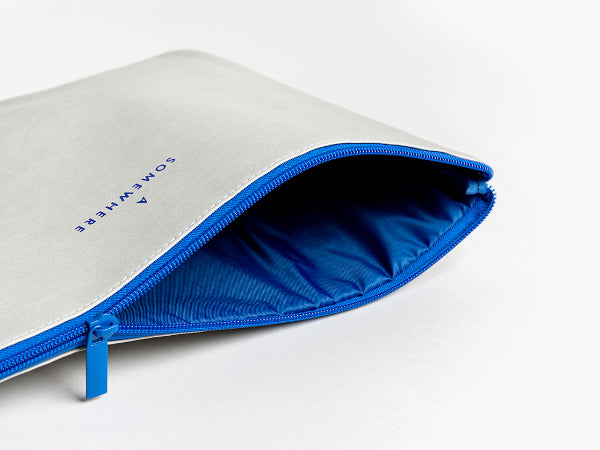 נרתיק מרופד בעיצוב מינימליסטי, שומר על המחשב הנייד שלך מוגן ובסטייל. עשוי עור טבעוני איכותי עם רוכסן כחול, מתאים לשימוש יומיומי בבית, במשרד או בדרכים.