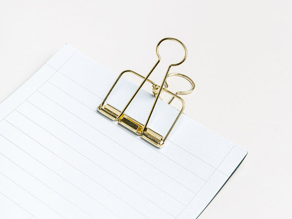קליפס גדול במיוחד בצבע זהב, בגודל 51 מ״מ, לשמירה על מסמכים, רעיונות ושרטוטים בצורה מסודרת ומרשימה. פריט פונקציונלי ודקורטיבי לשולחן העבודה במשרד או בבית.